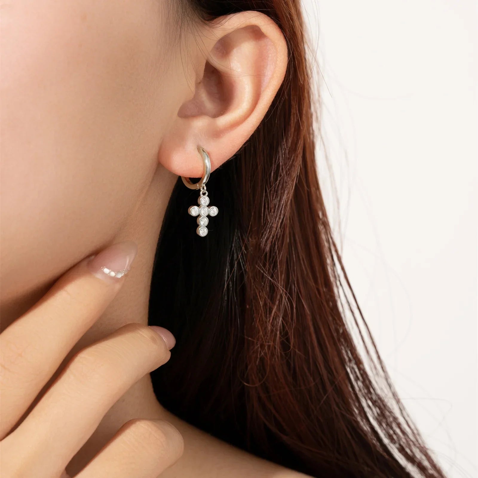 Boucles d'oreilles Aro Crucifix Zirconia (Plaqué...