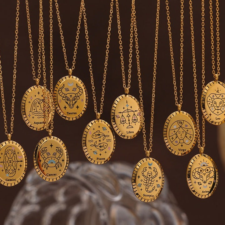 Collier Constellations du Zodiaque Médaille (Plaqué...