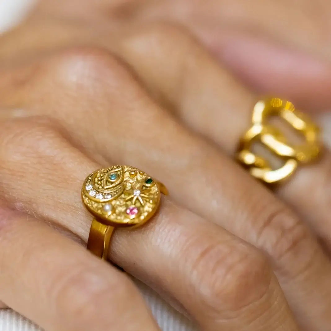 Matériau : Acier inoxydable 316L plaqué or 18K (PVD), cristaux de zircon, perle synthétique