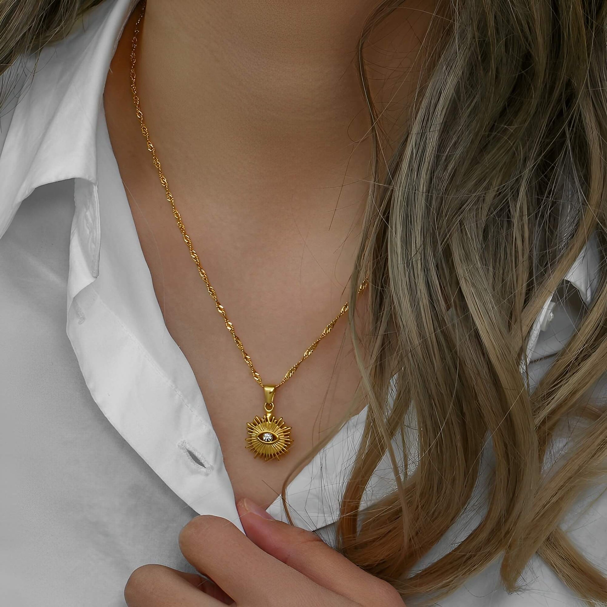 Ensemble Occhio: Collier + Bague Ajustable (Plaqué Or)